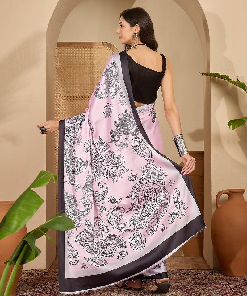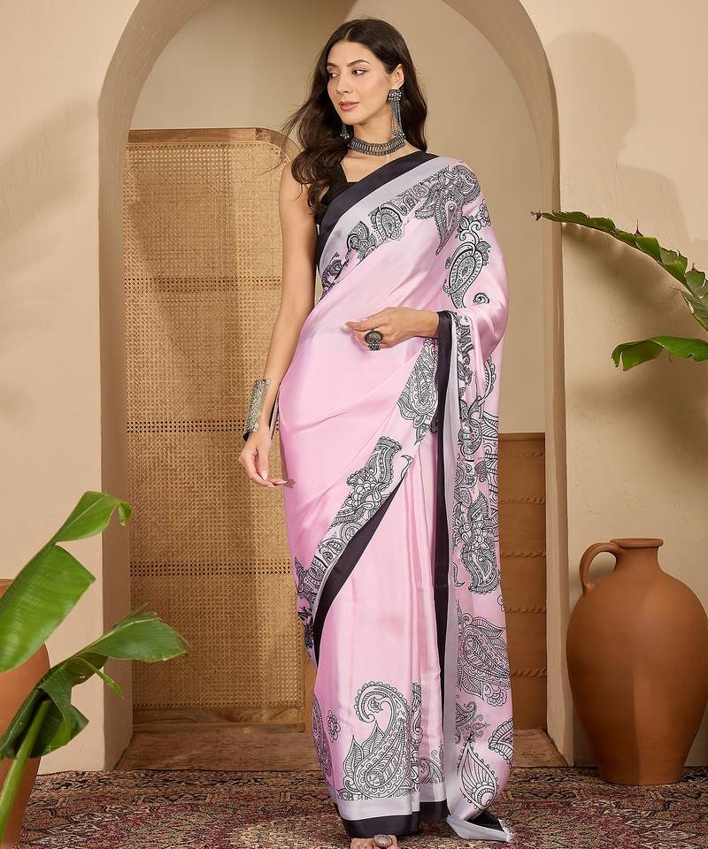 | Product Name | Women's Pink Satin Printed Saree With Unstitched Blouse Piece | |