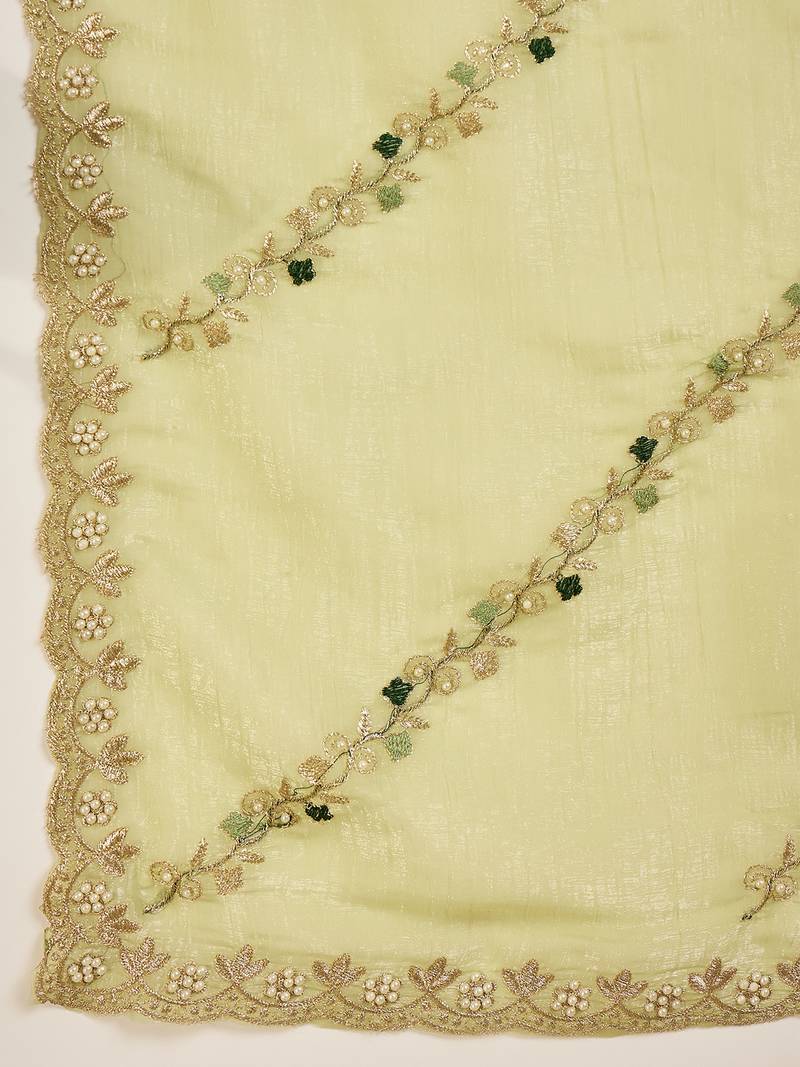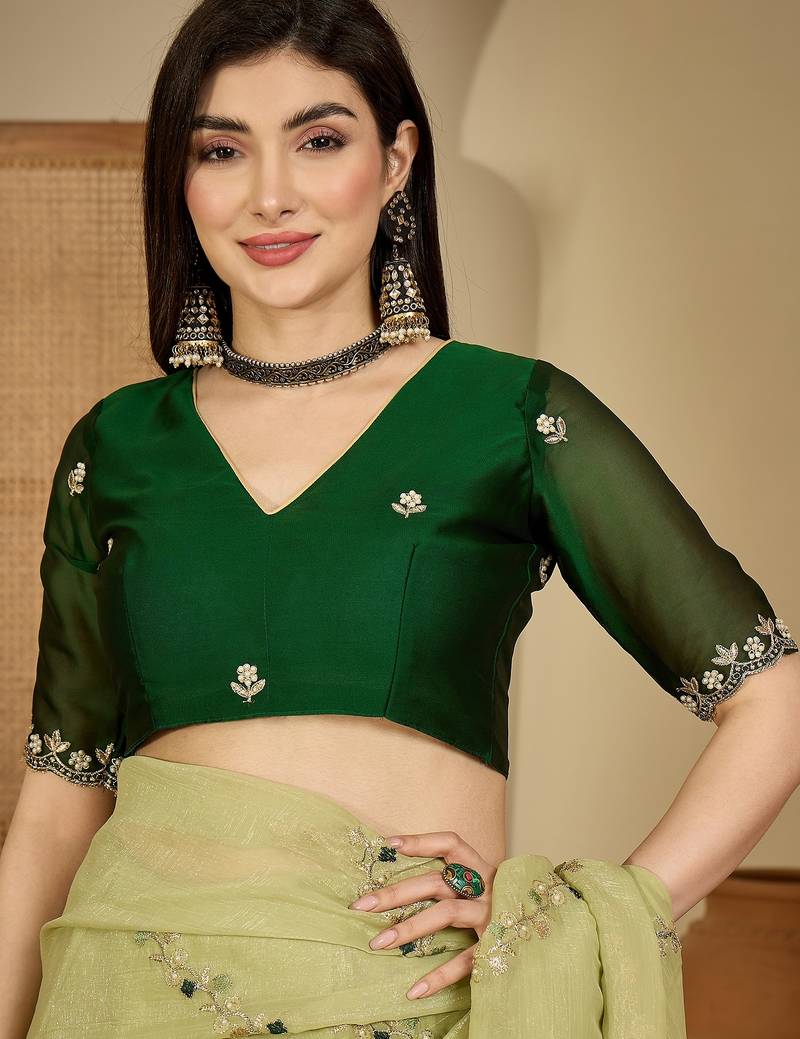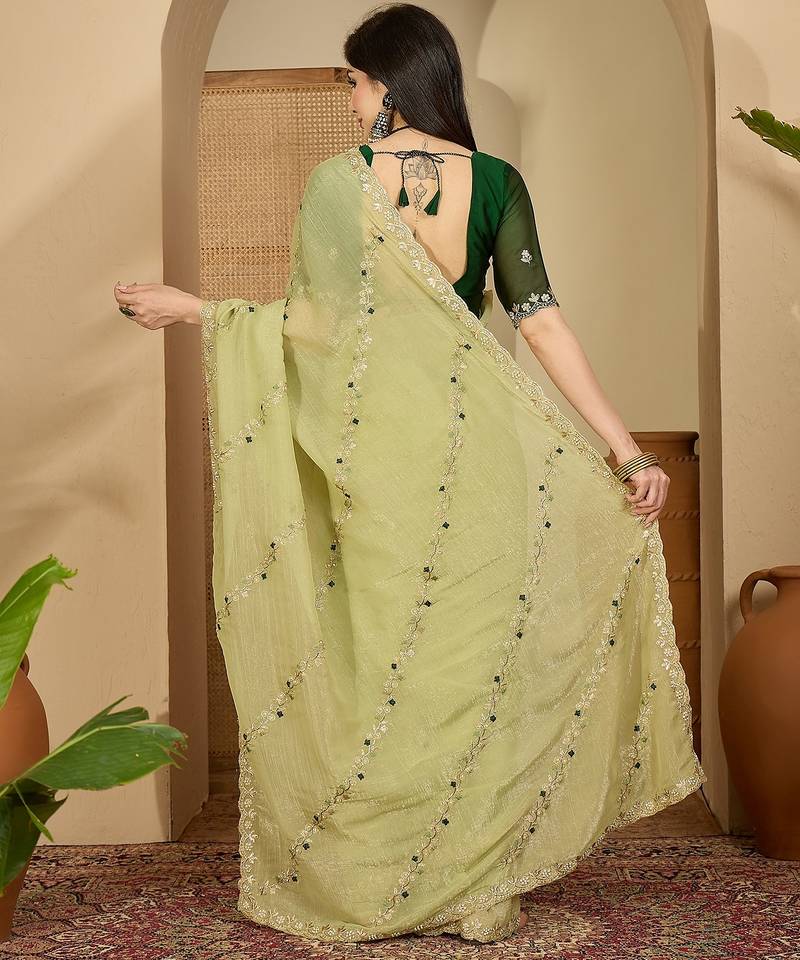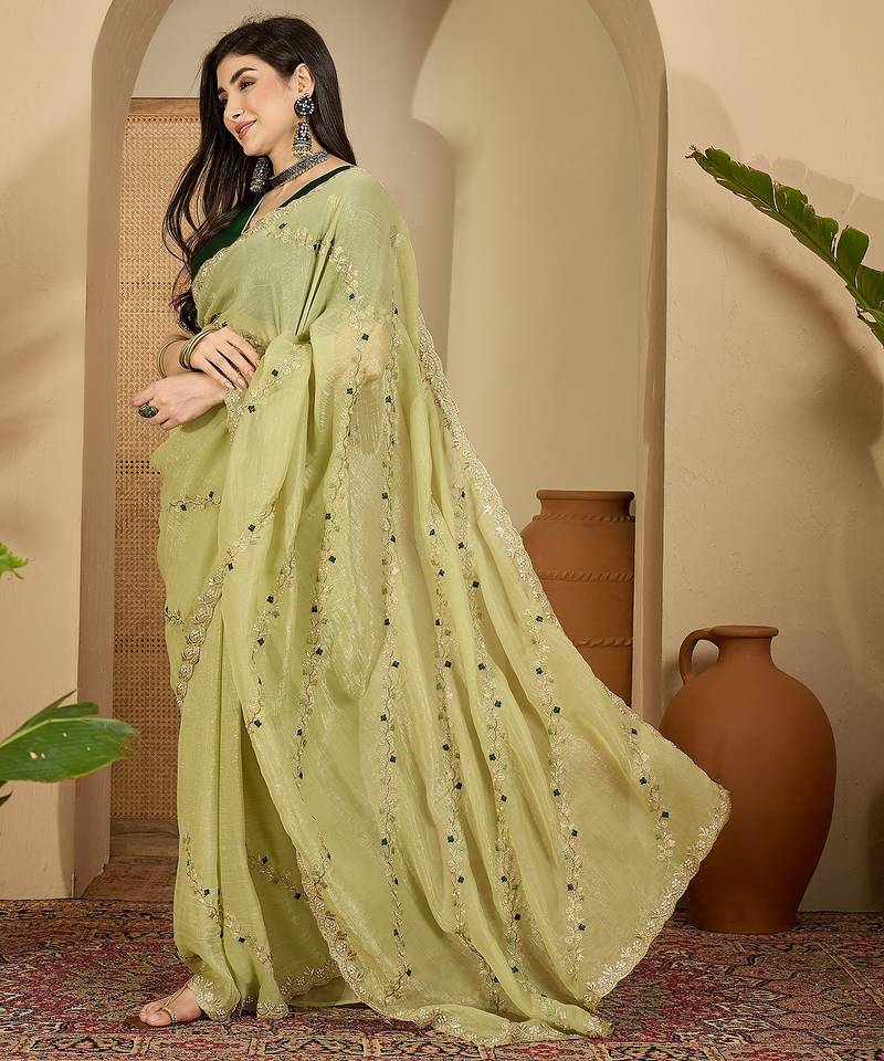 Product Name Women's Pista Chiffon Embroidered Saree With Unstitched Blouse Piece