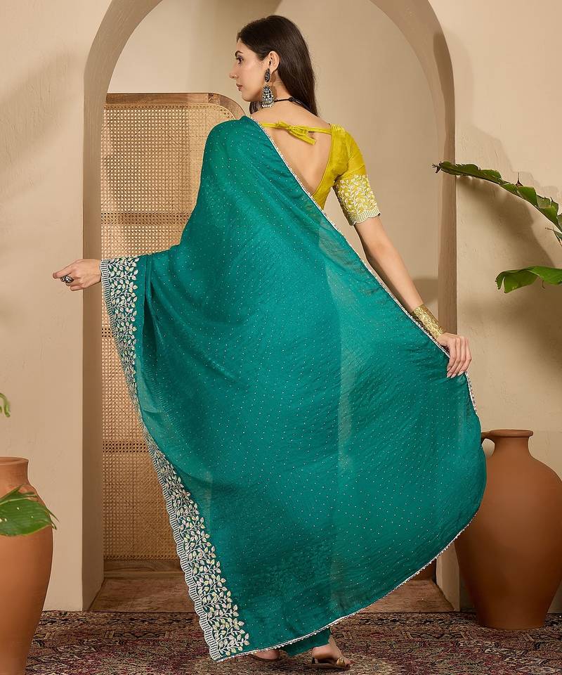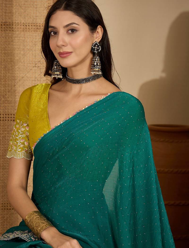 | Product Name | Women's Rama Silk Blend Chiffon Embroidered Saree With Unstitched Blouse Piece | |