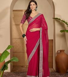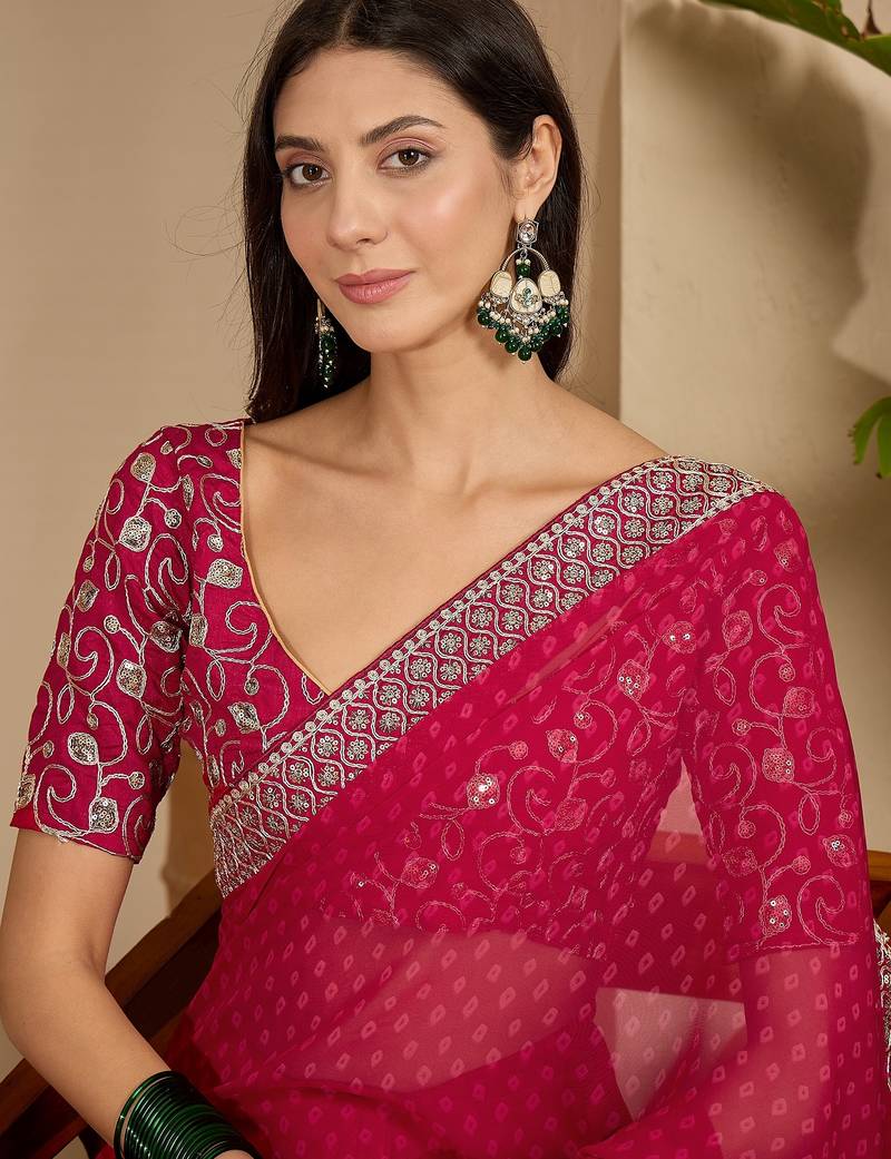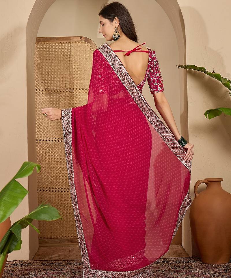 Women's rani georgette bandhni saree with unstitched blouse piece
