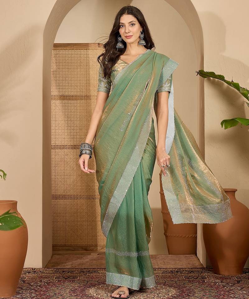 | • | Saree | : | Color- Green / Fabric- Silk Blend |