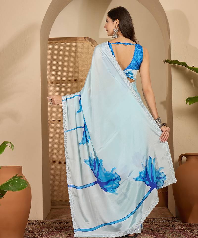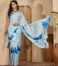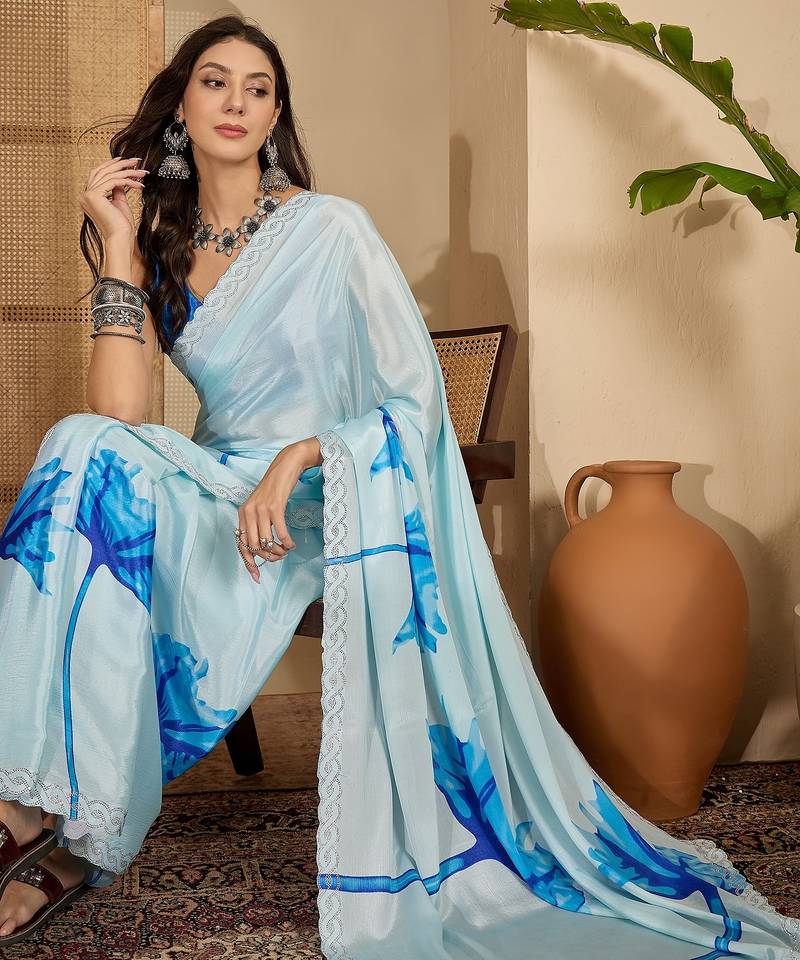 | Product Name | Women's Sky Blue Crepe Printed Saree With Unstitched Blouse Piece | |
