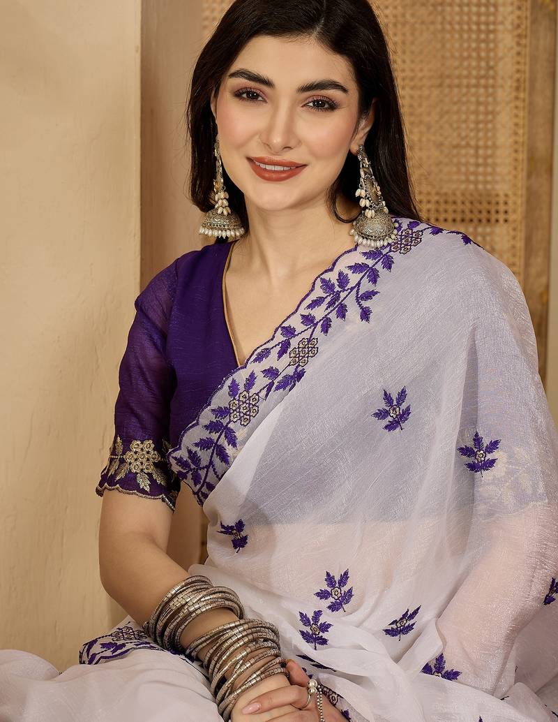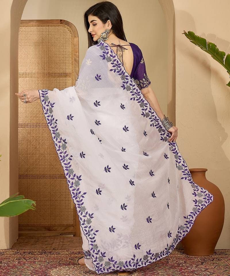| Product Name | Women's White Chiffon Embroidered Saree With Unstitched Blouse Piece | |