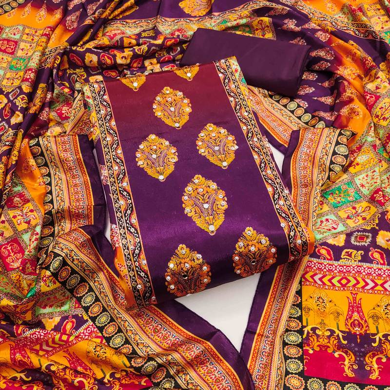 | Product Name | Women's Wine Silk Chiffon Printed Unstitched Dress Material | |