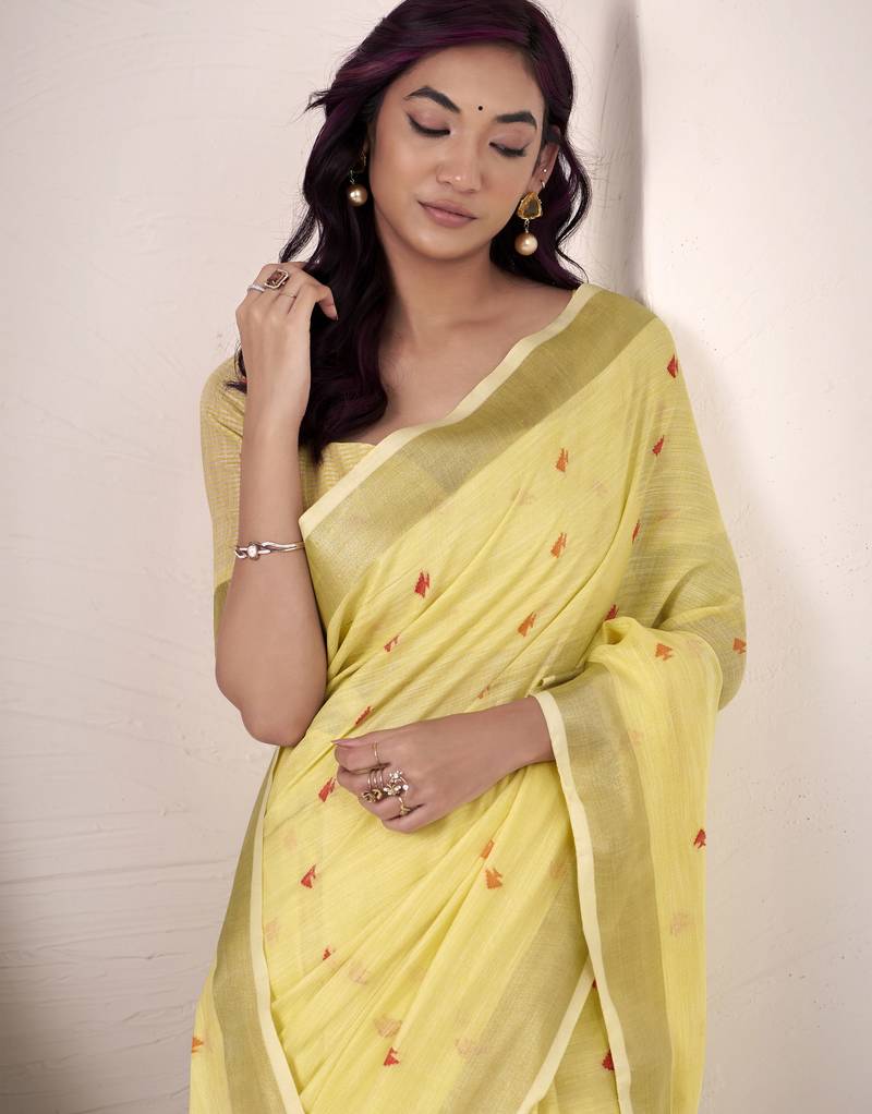 Product Name | Women's Yellow Linen Silk Woven Saree With Unstitched Silk Blouse Piece | |
