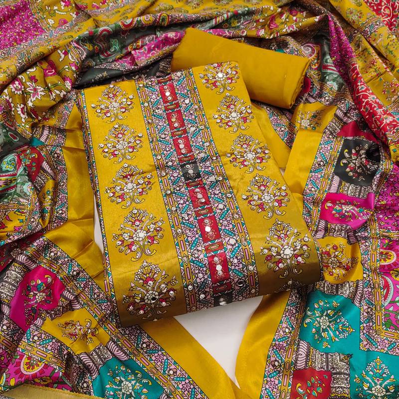 | Product Name | Women's Yellow Silk Chiffon Printed Unstitched Dress Material | |