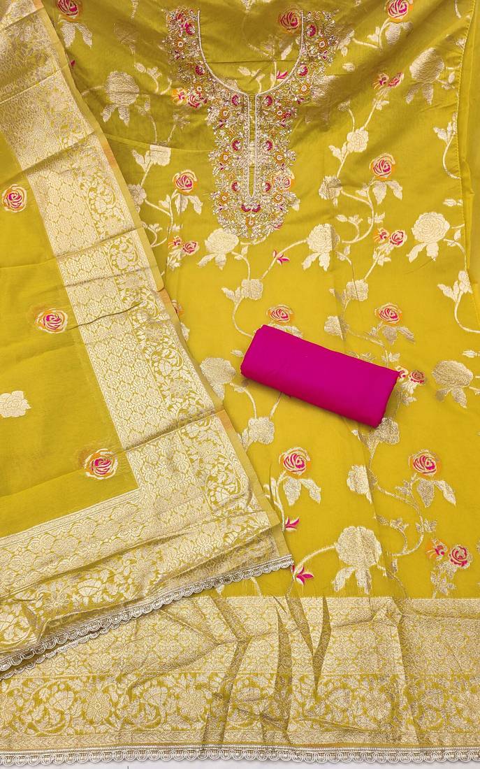 | Product Name | Yellow Cotton Silk Woven Design Unstitched Dress Material | |
