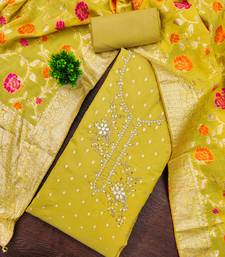 Yellow shimmer banarasi embellished unstitched dress material
