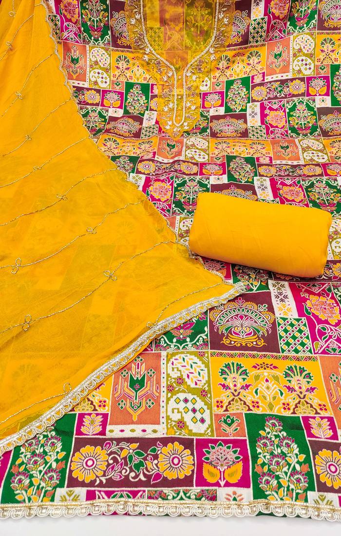 | Product Name | Yellow Viscose Banarasi Embellished Unstitched Dress Material | |