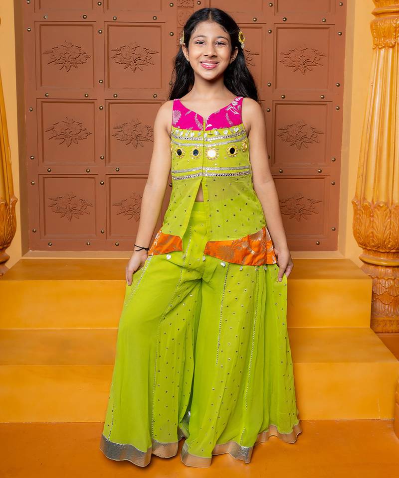 | Product Description | A Lively And Graceful Ensemble, This Georgette Co Ord Set Is Beautifully Enhanced With Multicolor Embroidery. The Fluid Drape Of The Georgette Fabric Creates An Airy, Voluminous Silhouette For The Sharara Pants, Ensuring Graceful Movement. The Vibrant, Multi Hued Embroidery Adds A Rich, Festive, And Eye Catching Layer Of Detail, Making This A Perfect Choice For Celebratory Events