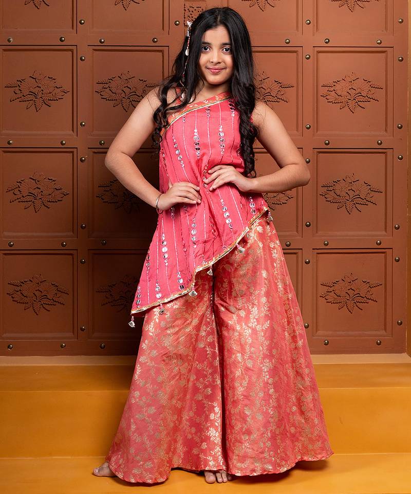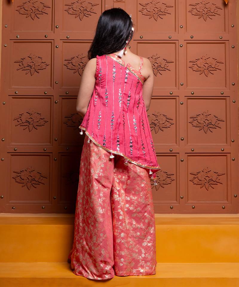 | Product Name | Pink And Orange Embroidered Brocade Co Ord Set | |
