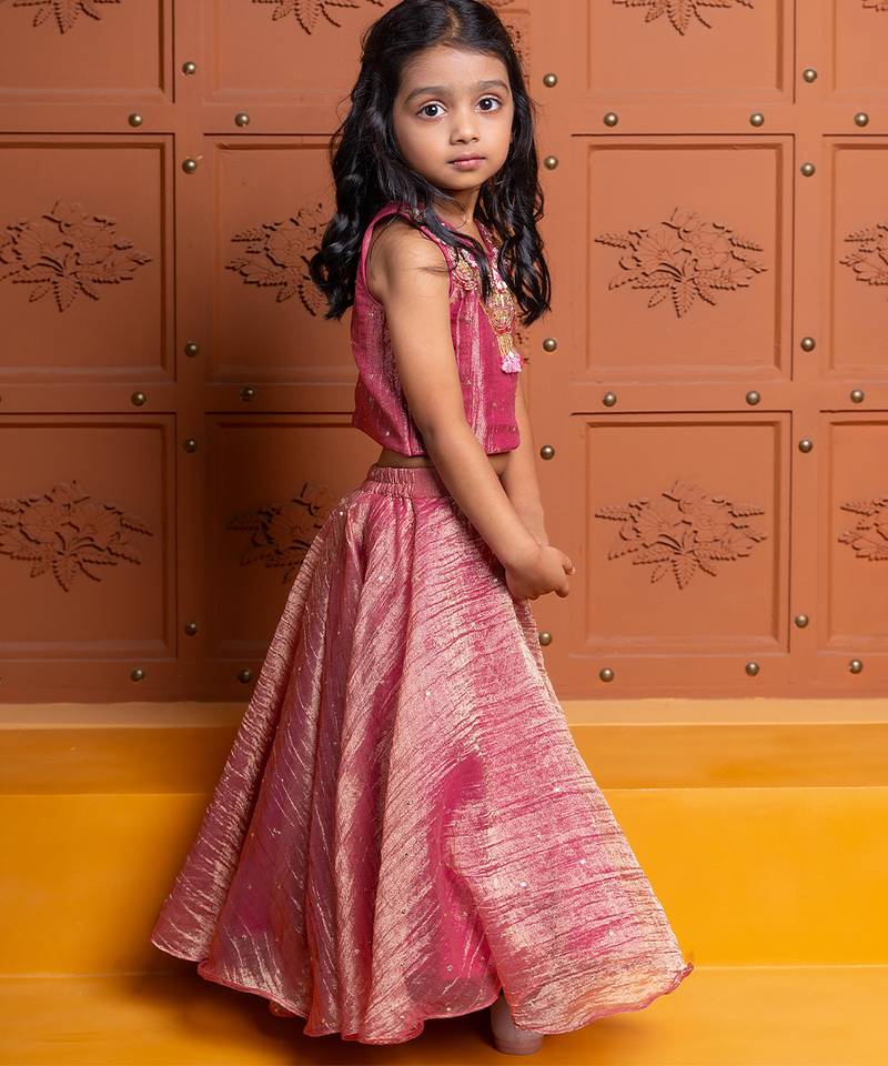 | Product Description | A Beautifully Soft And Elegant Choice, This Pink Tissue Lehenga Is Adorned With Delicate Embroidery. The Tissue Fabric Provides A Beautiful, Slightly Stiff Structure And A Subtle Metallic Sheen, Which Gives The Lehenga A Light, Airy Feel With A Touch Of Glamour. The Embroidery Adds Intricate, Traditional Texture, Making This A Romantic And Sophisticated Ensemble For Festive Occasions