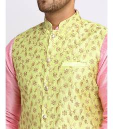 | Product Name | Men Pink Kurta And Churidar With Embroidered Lime Green Nehru Jacket | |