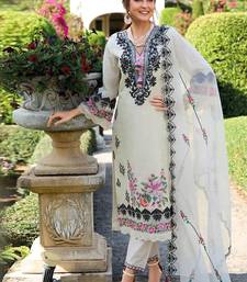 All white pure chinon based embroidery worked pakistani suit for women semi stitched