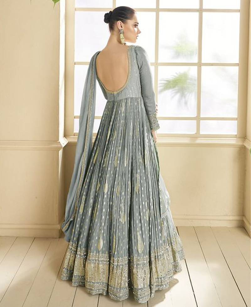 | Product Name | Beautiful Grey Banarasi Silk Anarkali Suit For Women Wedding Wear | |