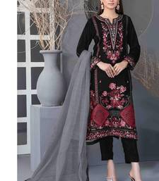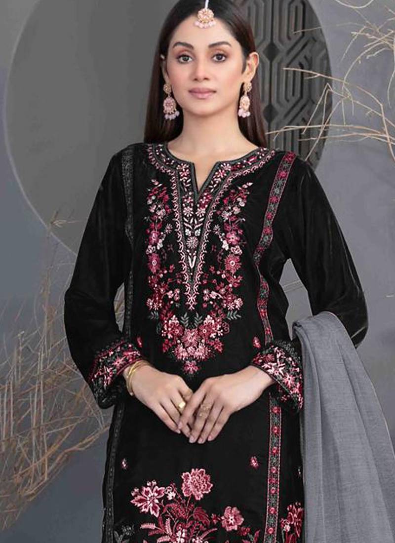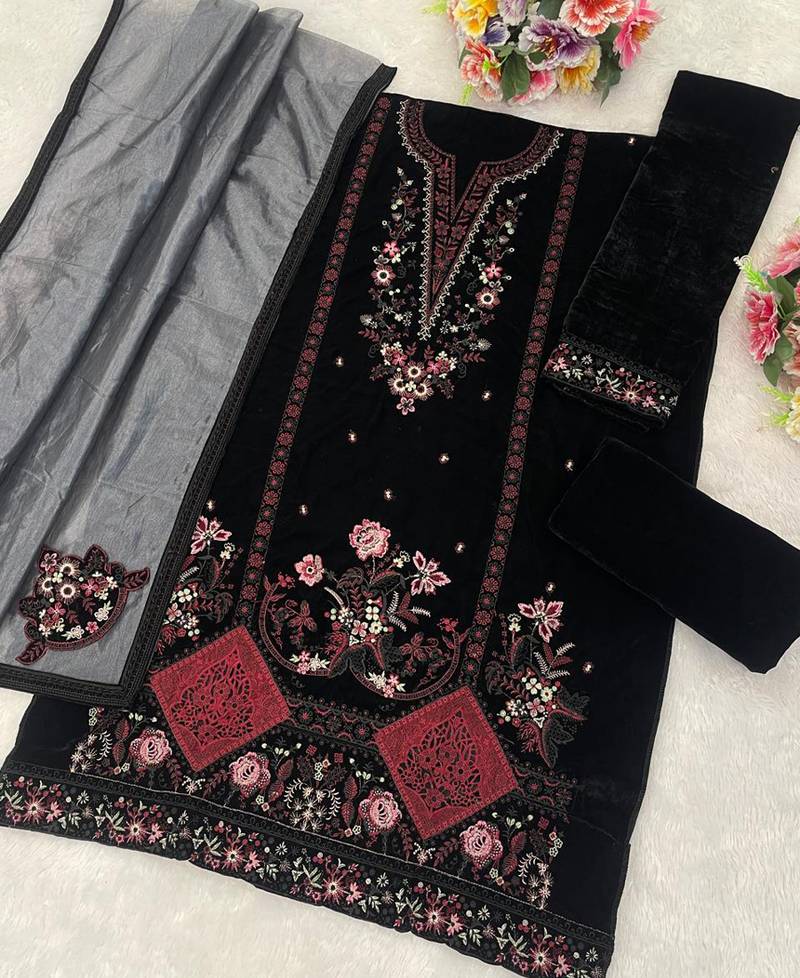 Black velvet straight suit for women semi stitched