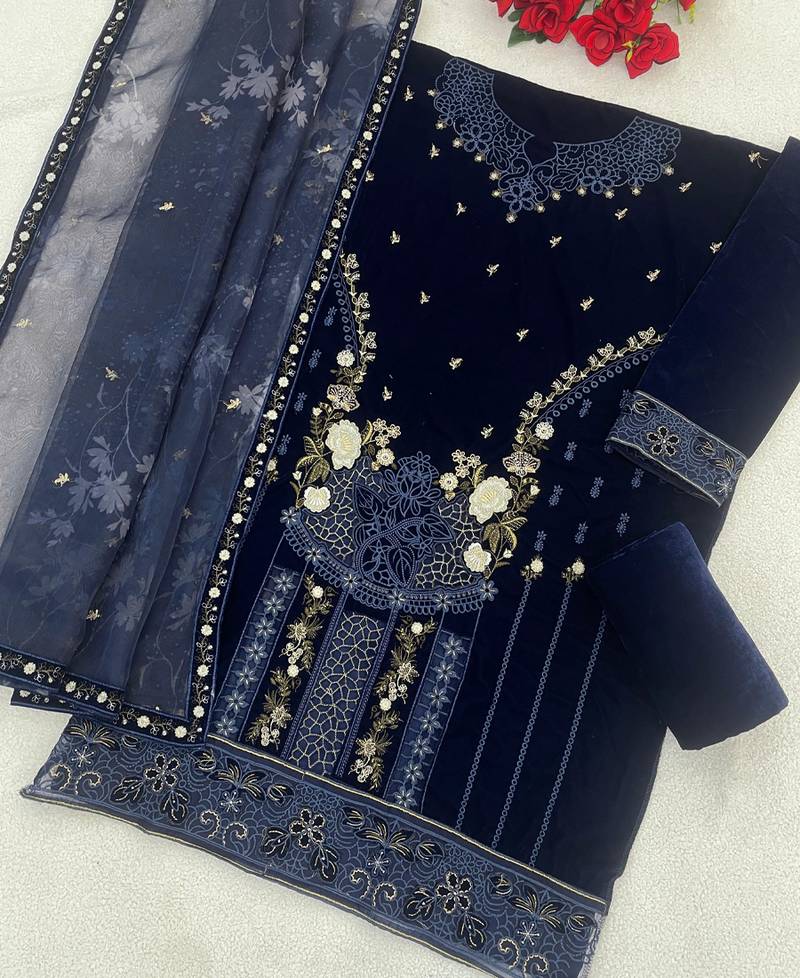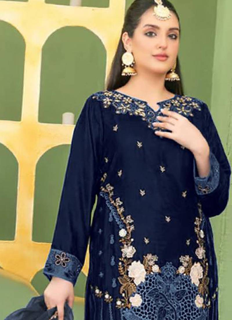 | Product Name | Blue Velvet Pakistani Straight Suit For Women | |