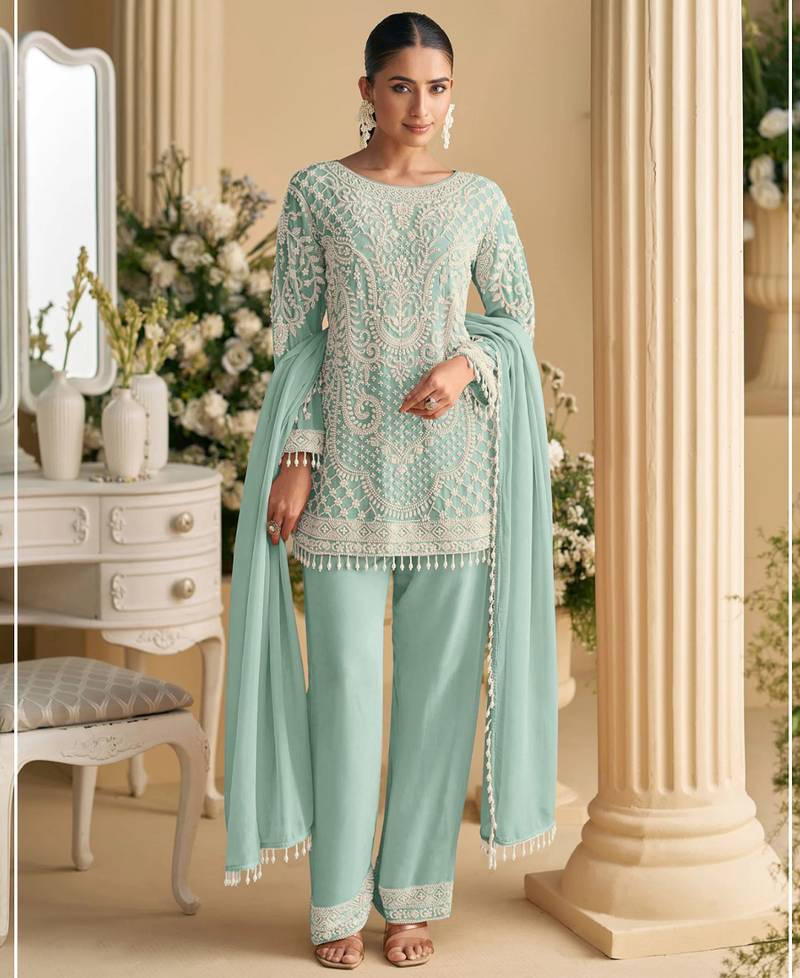 | Product Name | Designer Pakistani Style Sky Blue Georgette Salwar Suit For Women Wedding Wear | |