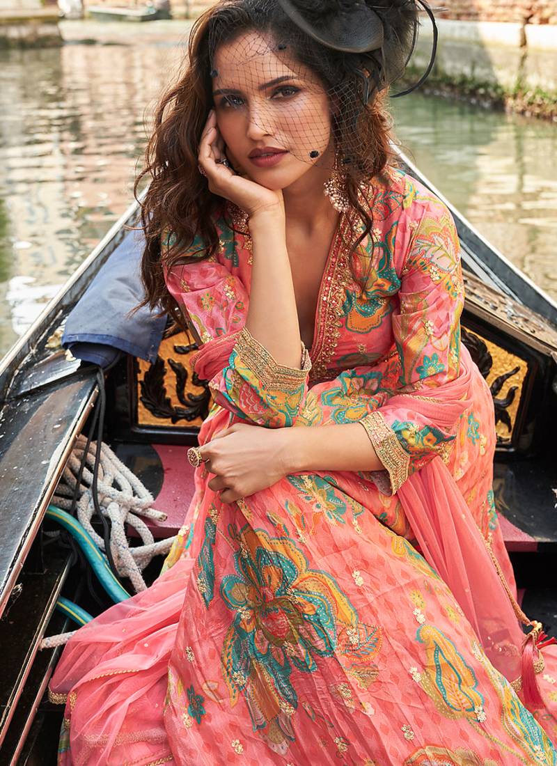 | Product Name | Peach Floral Print Chiffon Anarkali Salwar Kameez | |