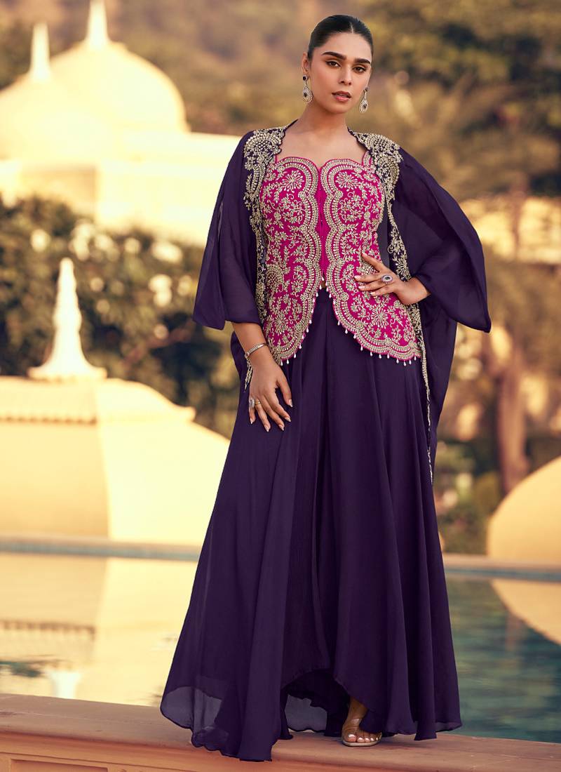| Product Name | Elegant Purple Crop Top Suit Set For Women Wedding Wear | |
