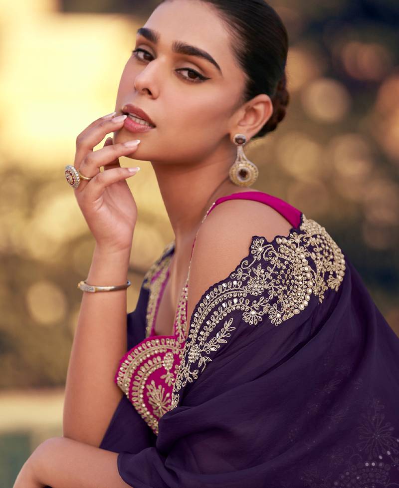 Elegant purple crop top suit set for women wedding wear semi stitched
