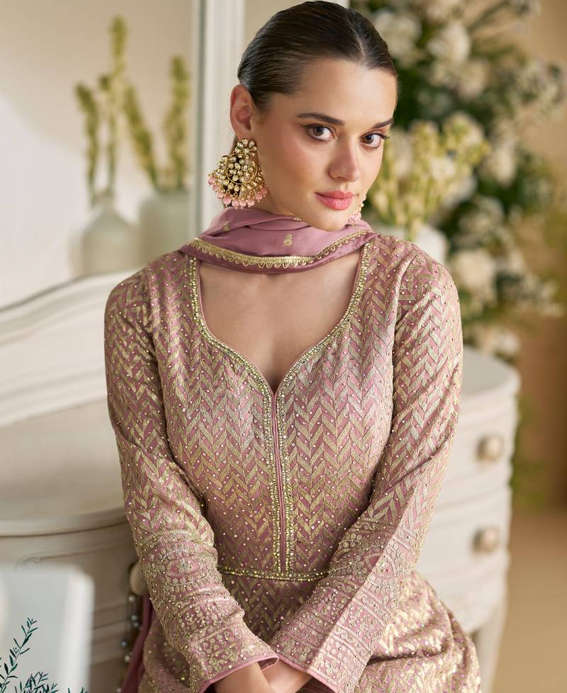| Product Name | Heavy Embroidery Worked Georgette Pink Anarkali For Women Wedding Wear | |