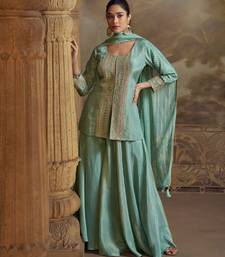 Indowester style palazzo suit for women georgette fabric sky blue semi stitched