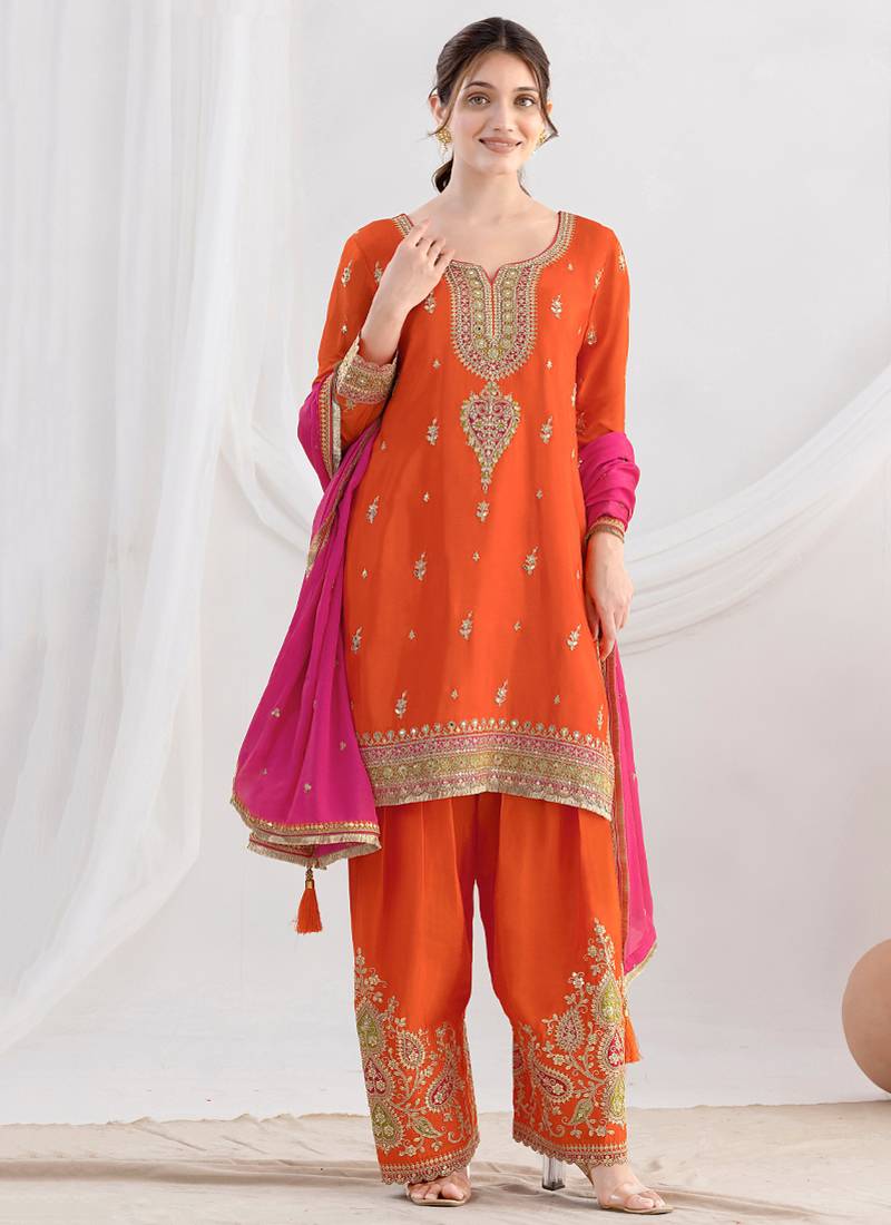 | Product Name | Orange Embroidered Chiffon Straight Suits | |