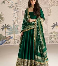 Green embroidered silk anarkali-salwar-kameez semi stitched