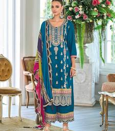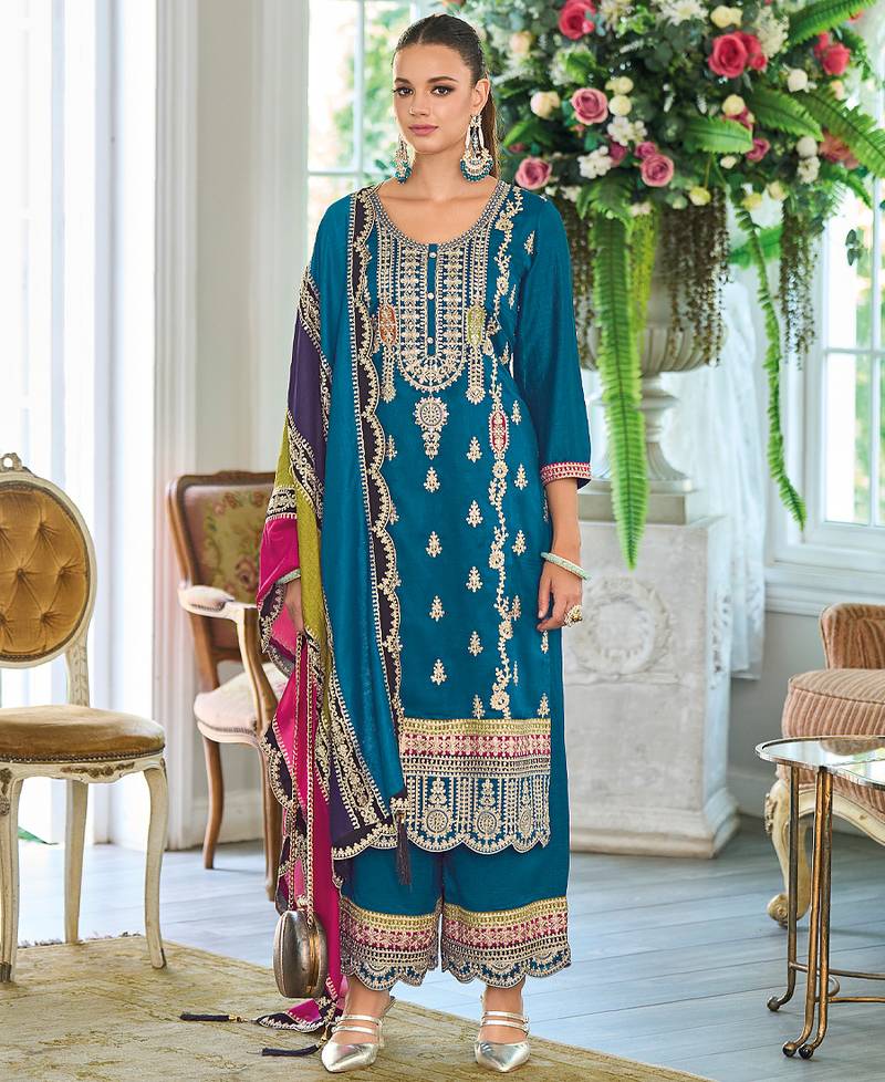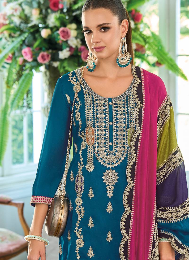 | Product Name | New Pakistani Straight Suit For Women Chinon Fabric Blue | |