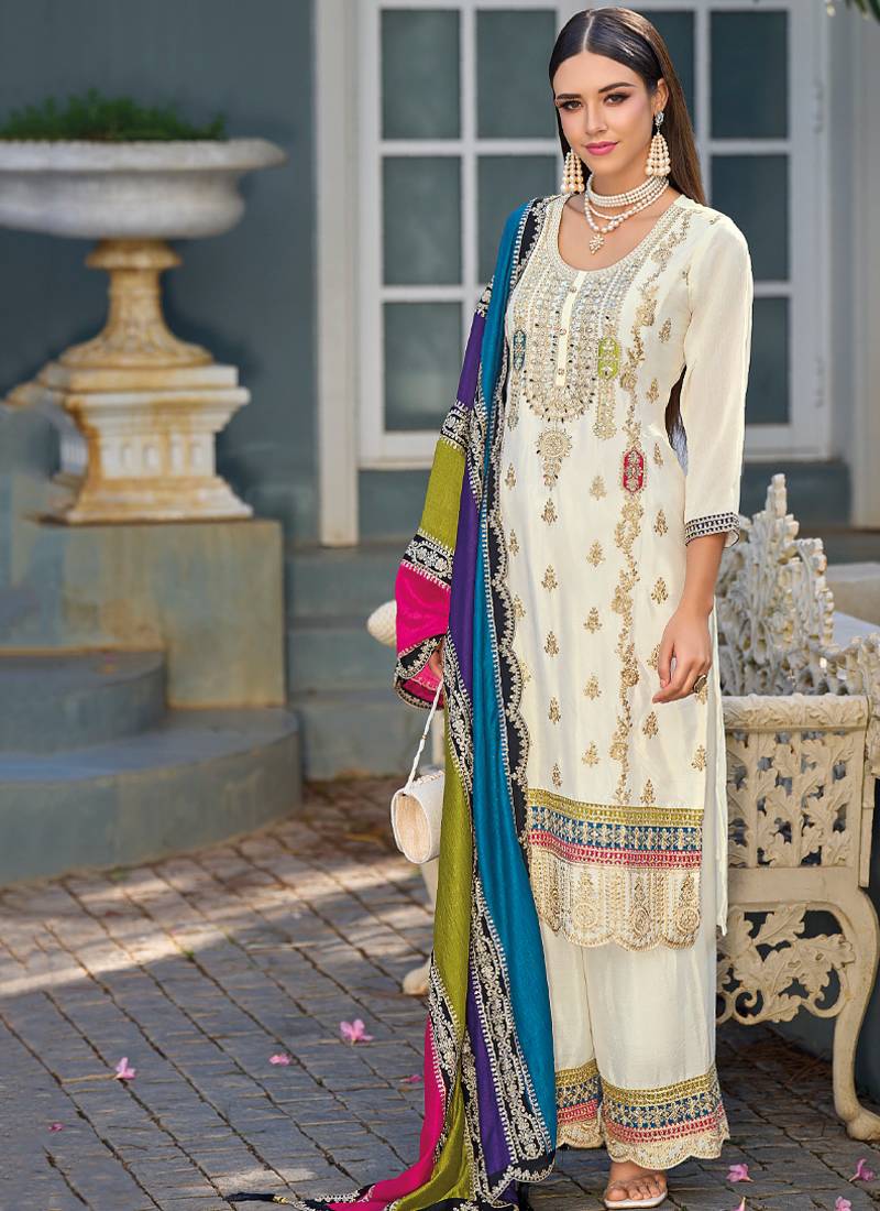 | Product Name | New Pakistani Straight Suit For Women Chinon Fabric White | |