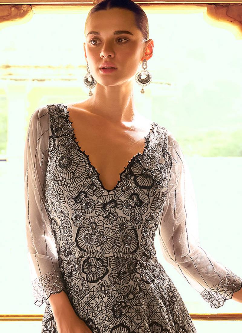 Product Name Party Wear Off White Georgette Anarkali Gown For Women