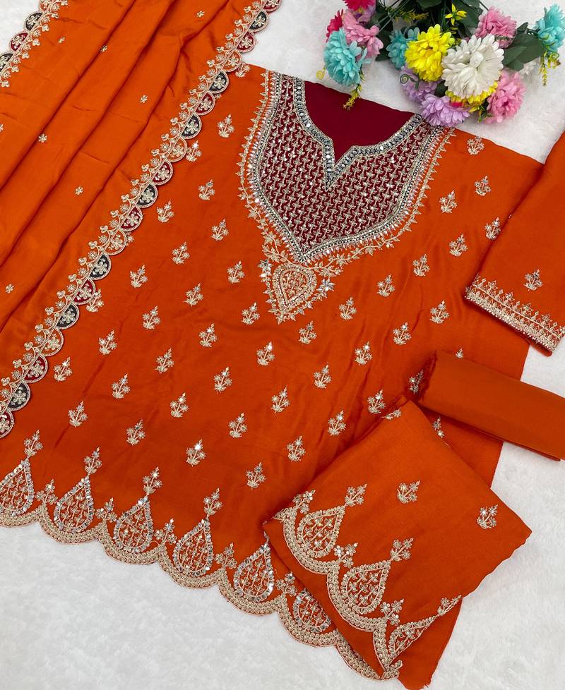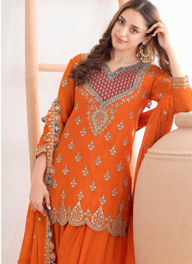 | Product Name | Orange Chinon Palazzo Suit For Women Wear | |