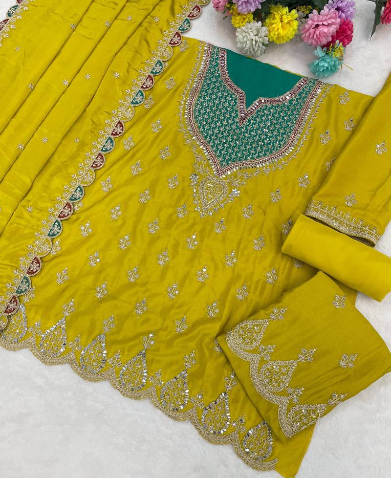 | Product Name | Yellow Chinon Palazzo Suit For Women Wear | |