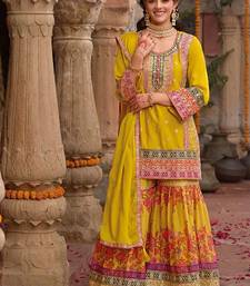 Stylish yellow floral printed heavy wedding wear gharara suit for women semi stitched