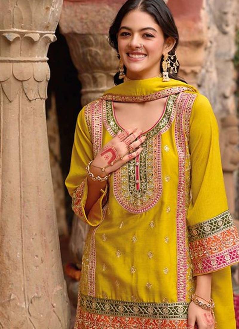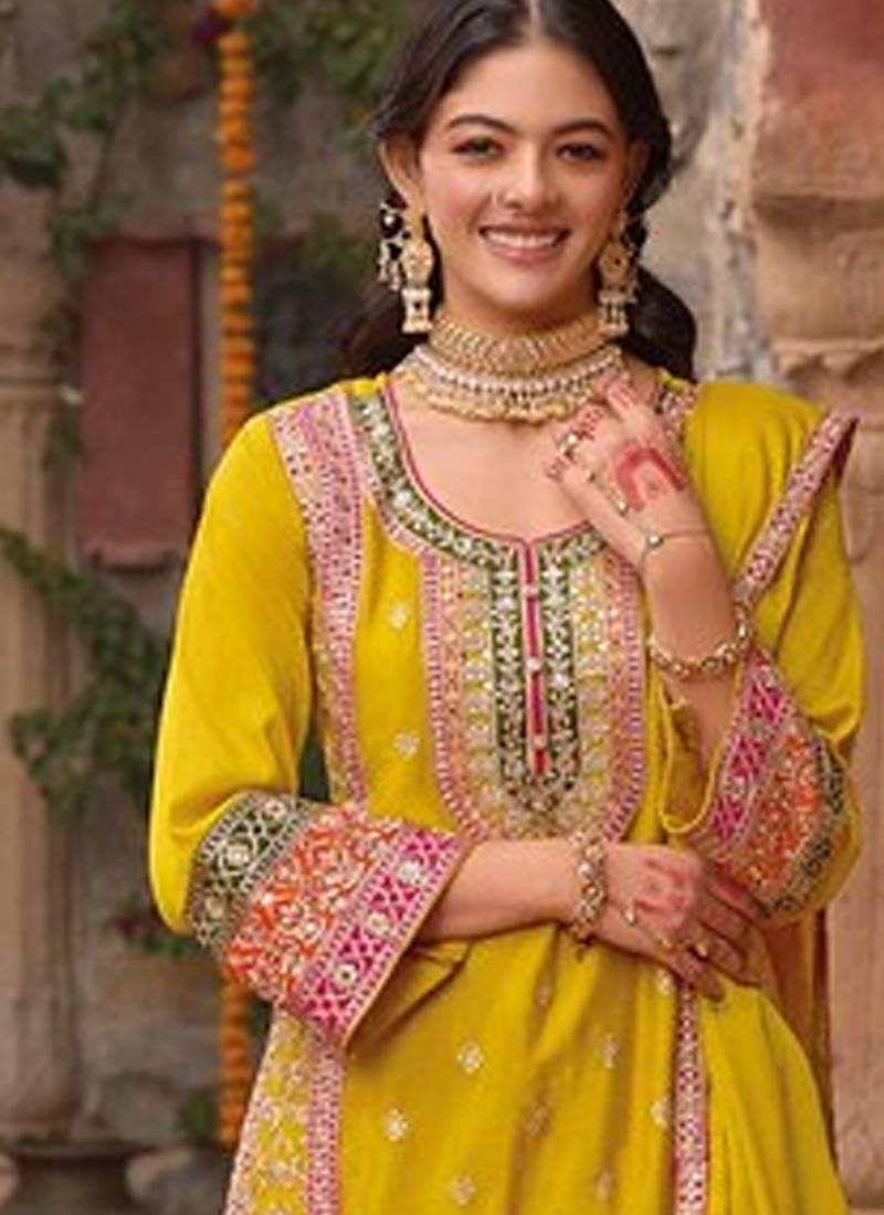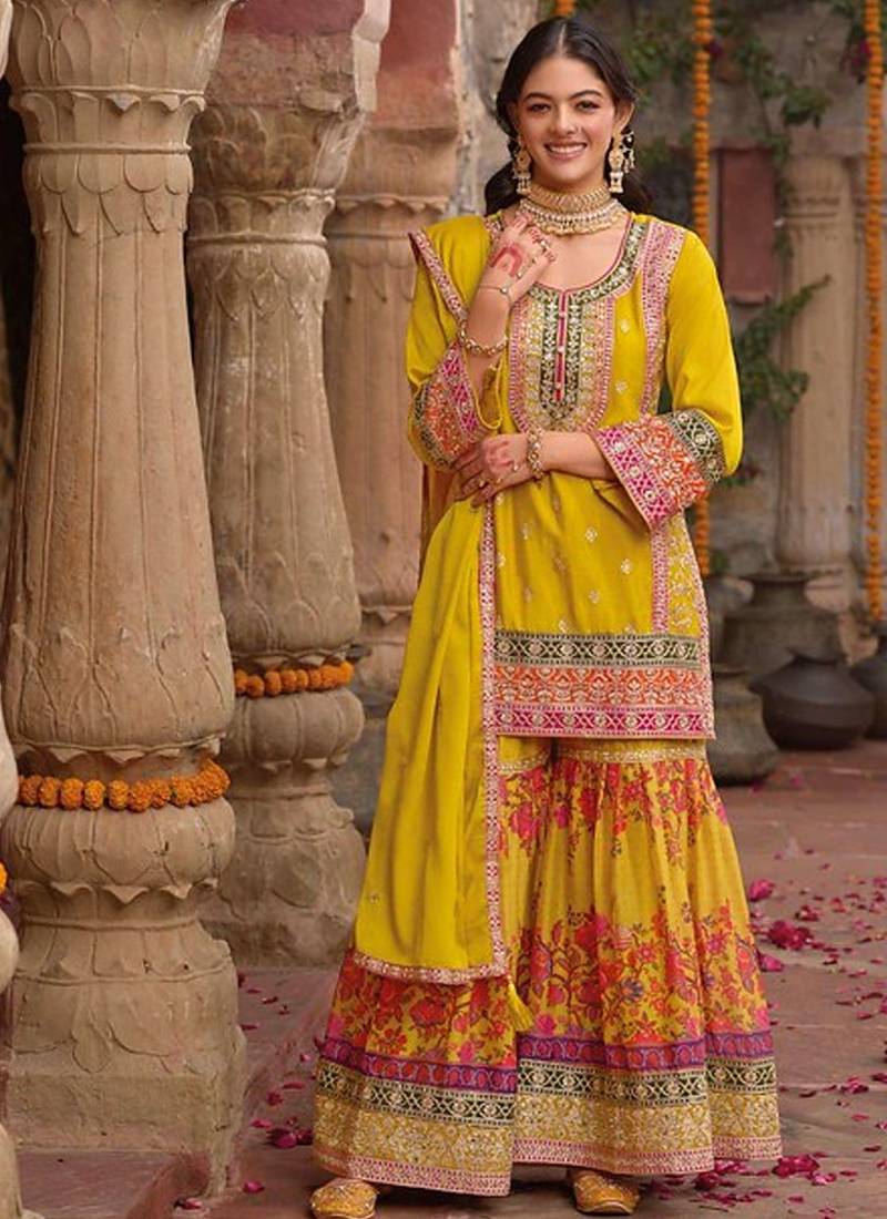 | Product Name | Stylish Yellow Floral Printed Heavy Wedding Wear Gharara Suit For Women | |