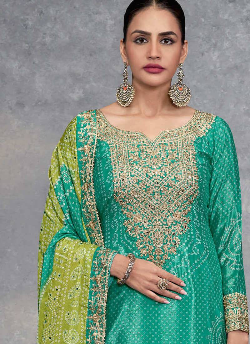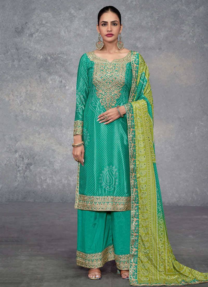 Traditional bandhani printed aqua blue palazzo suit for women wear semi stitched