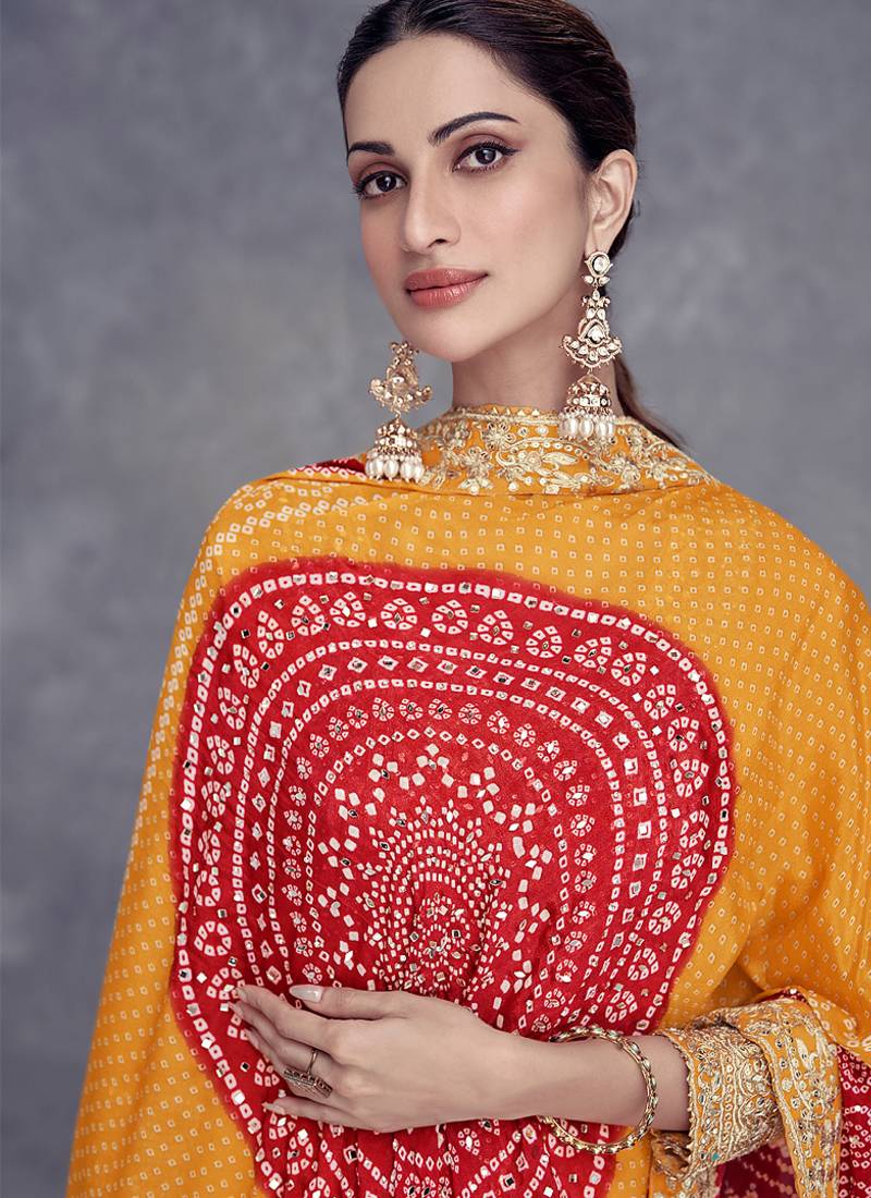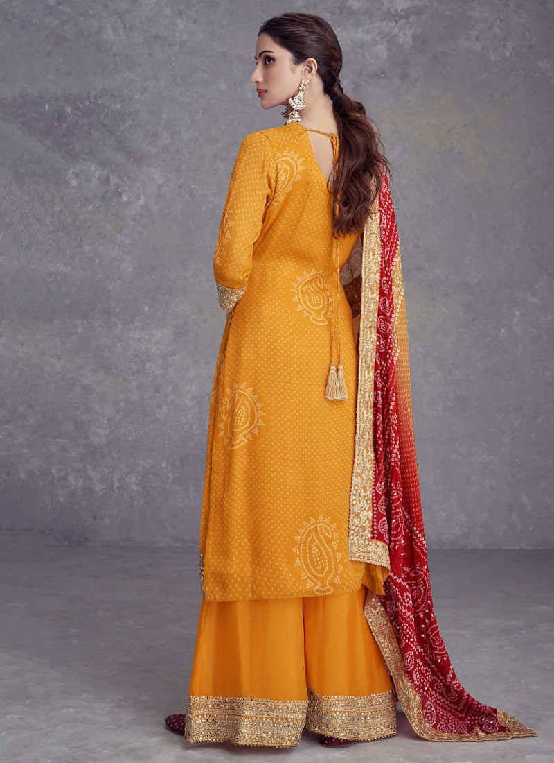 | Product Name | Traditional Bandhani Printed Yellow Palazzo Suit For Women Wear | |