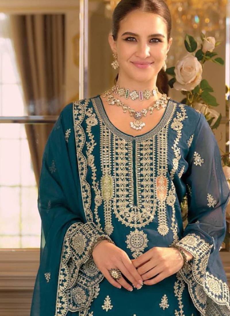 | Product Name | Blue Embroidered Chiffon Straight Suits | |
