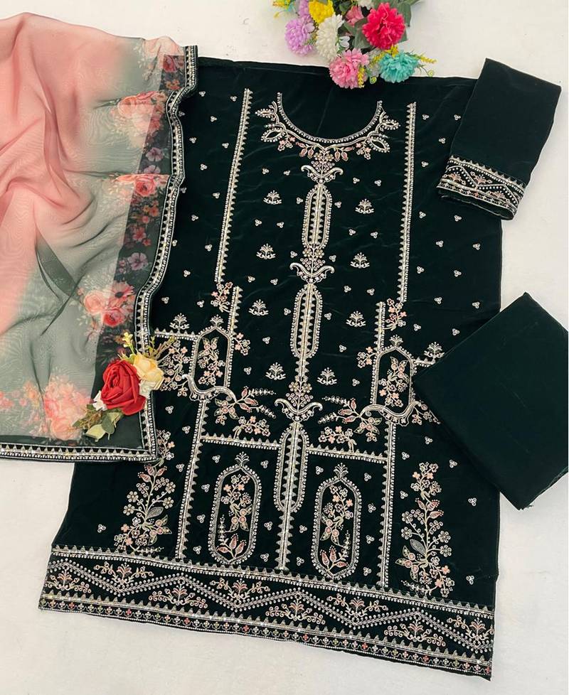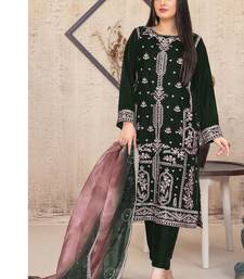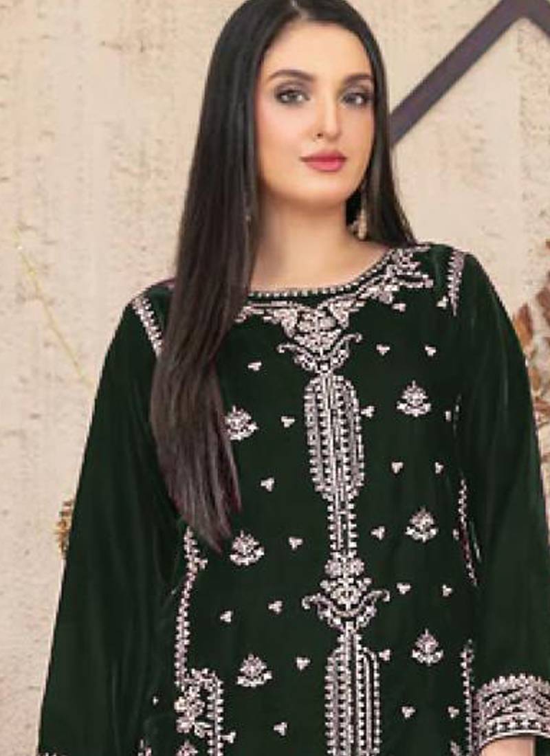 green velvet straight suit for women semi stitched