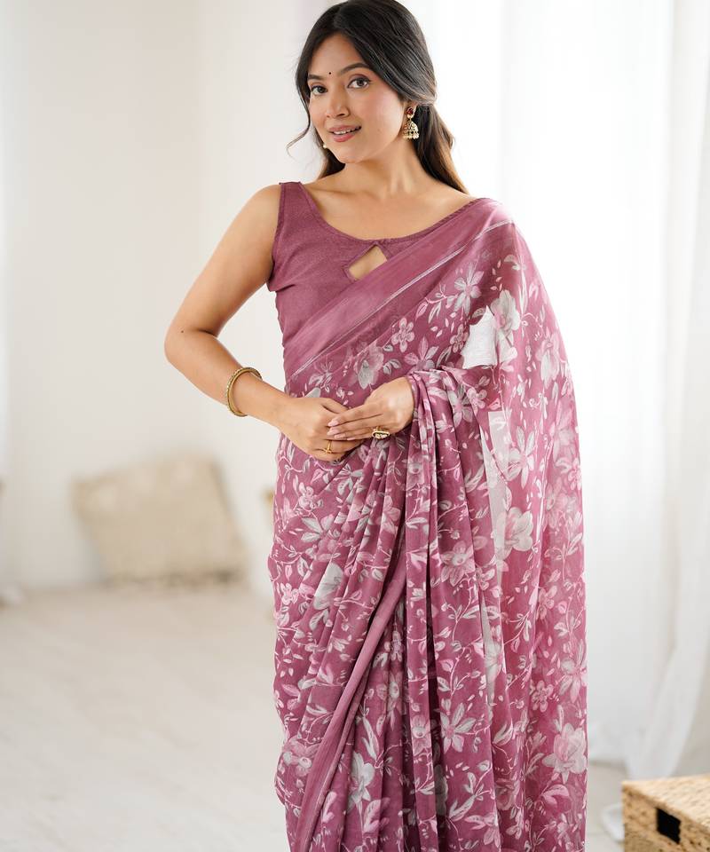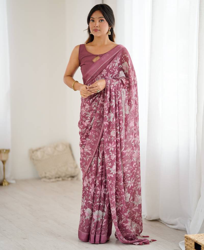 Fabrics Georgette Silk Pattern Plain Saree With Foil Work And Small Lace And Zalar Lace Blouse Unstich Plain Georgette Silk Sari Length 5.50 Blouse Length 0.80 Saree Look Rich Georgette Silk And Foil Work With Beautiful Tone Colour Saree Supreme Quality Product