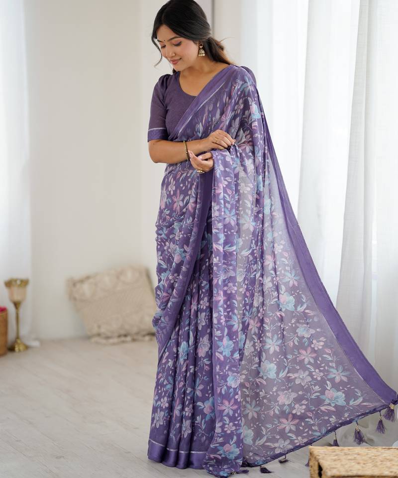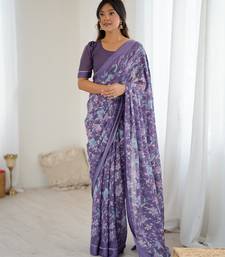 • | Saree | : | Color- Light Lavender / Fabric- Satin |
