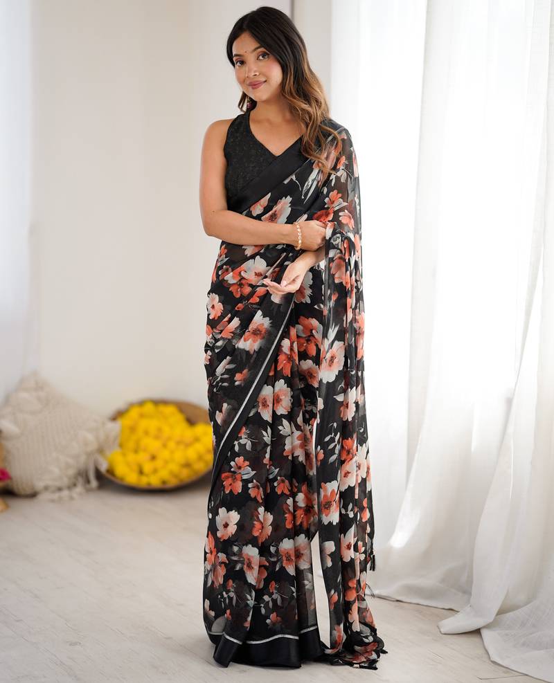 Product Name | Bright Moss Satin Patta Printed Saree | |