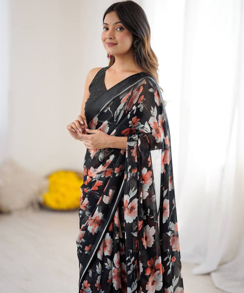 Product Description | Fabrics Georgette Silk Pattern Plain Saree With Foil Work And Small Lace And Zalar Lace Blouse Unstich Plain Georgette Silk Sari Length 5.50 Blouse Length 0.80 Saree Look Rich Georgette Silk And Foil Work With Beautiful Tone Colour Saree Supreme Quality Product |