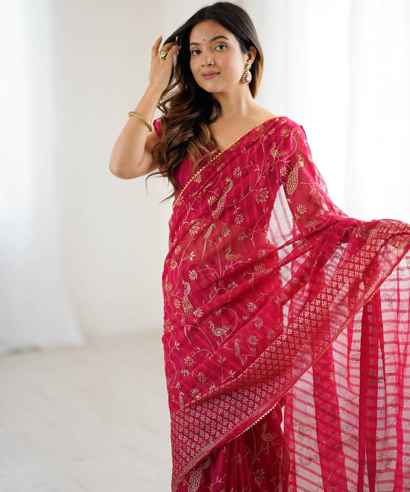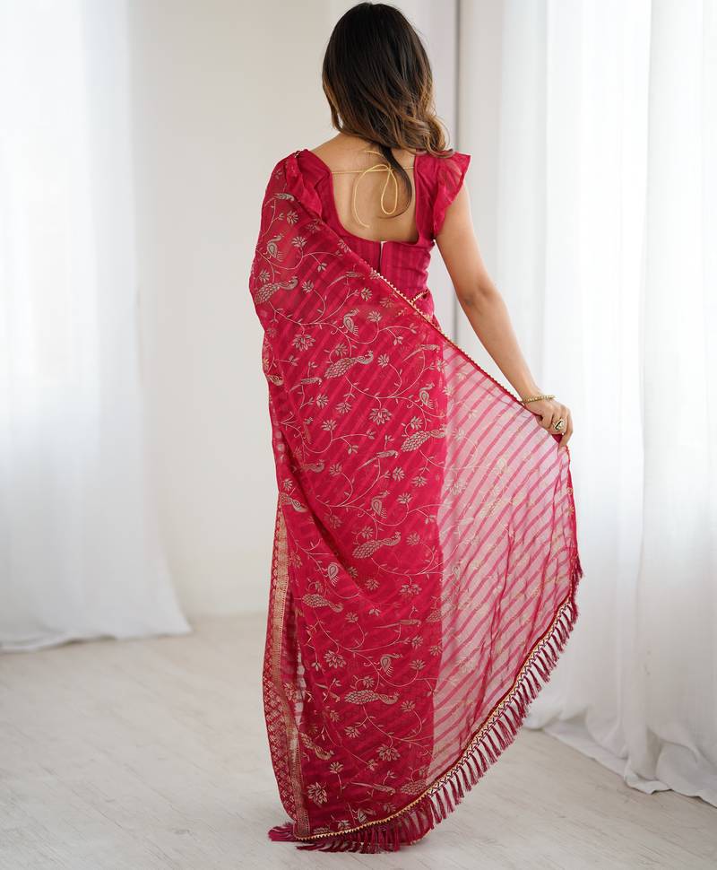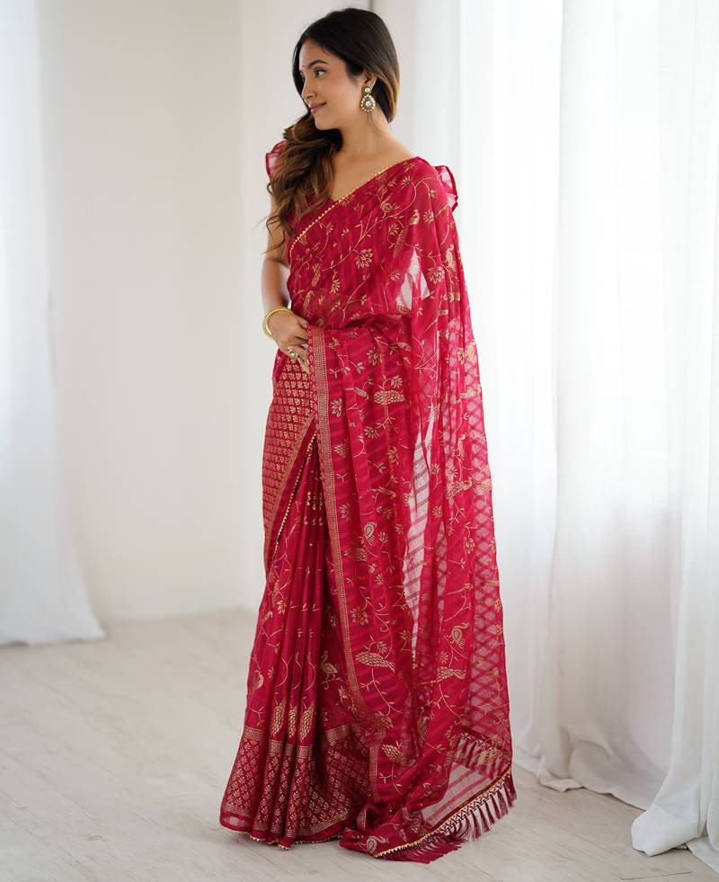 Product Description | Fabrics Georgette Silk Pattern Plain Saree With Foil Work And Small Lace And Zalar Lace Blouse Unstich Plain Georgette Silk Sari Length 5.50 Blouse Length 0.80 Saree Look Rich Georgette Silk And Foil Work With Beautiful Tone Colour Saree Supreme Quality Product |