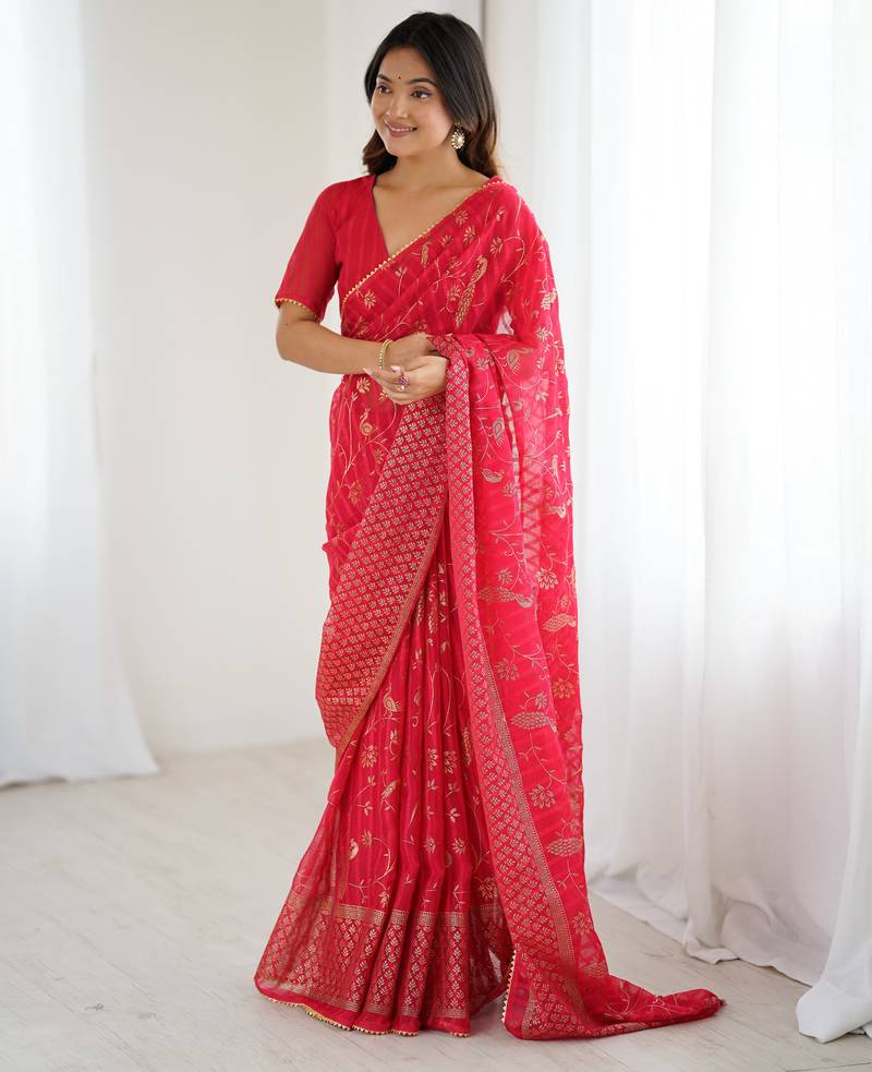 • | Saree | : | Color- Red / Fabric- Georgette |