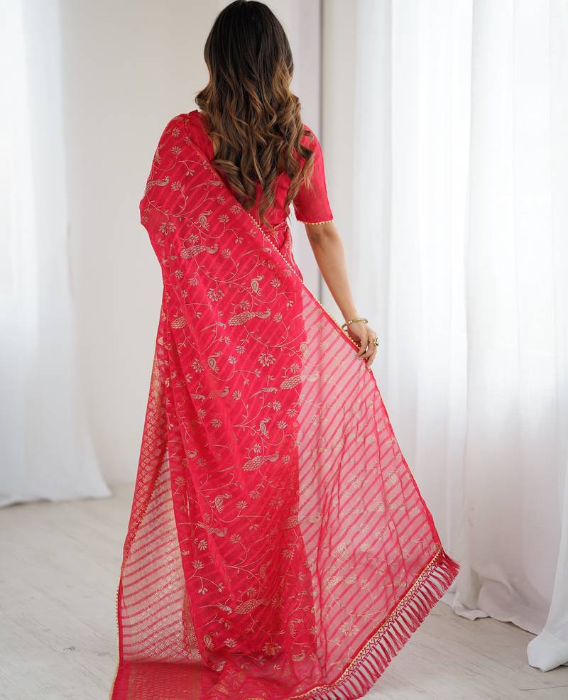 Product Description | Fabrics Georgette Silk Pattern Plain Saree With Foil Work And Small Lace And Zalar Lace Blouse Unstich Plain Georgette Silk Sari Length 5.50 Blouse Length 0.80 Saree Look Rich Georgette Silk And Foil Work With Beautiful Tone Colour Saree Supreme Quality Product |