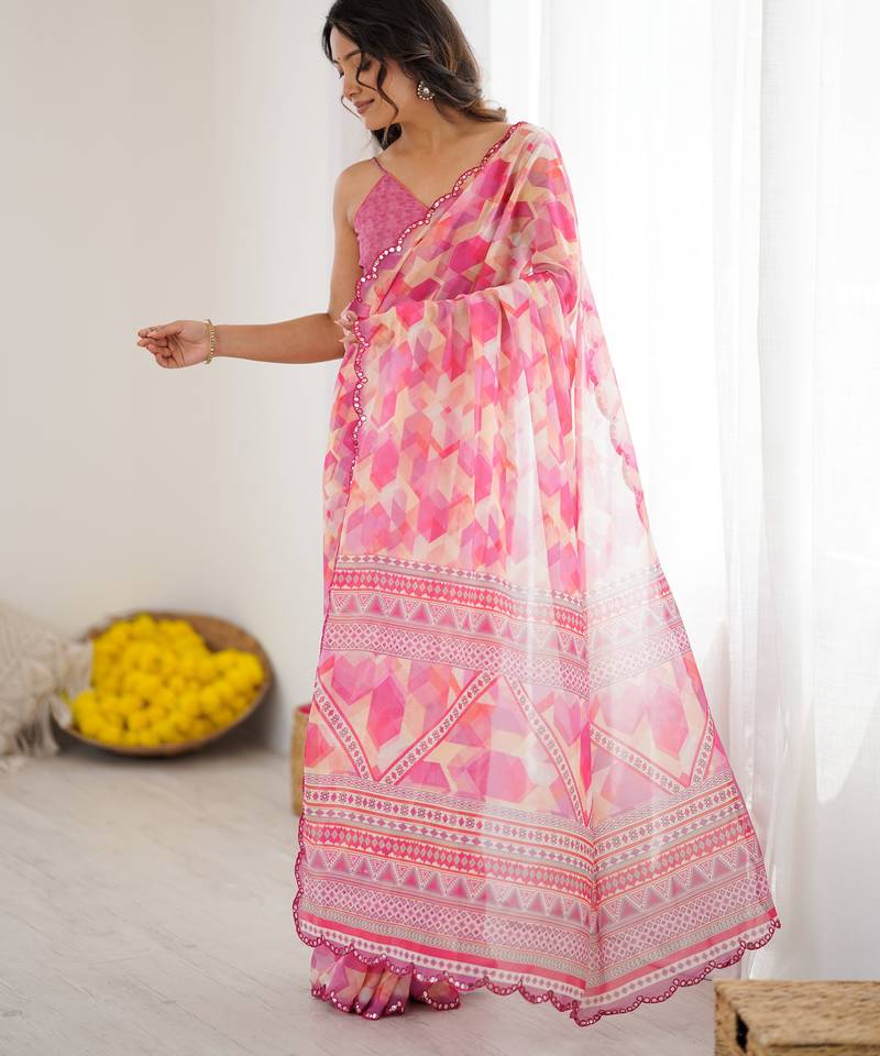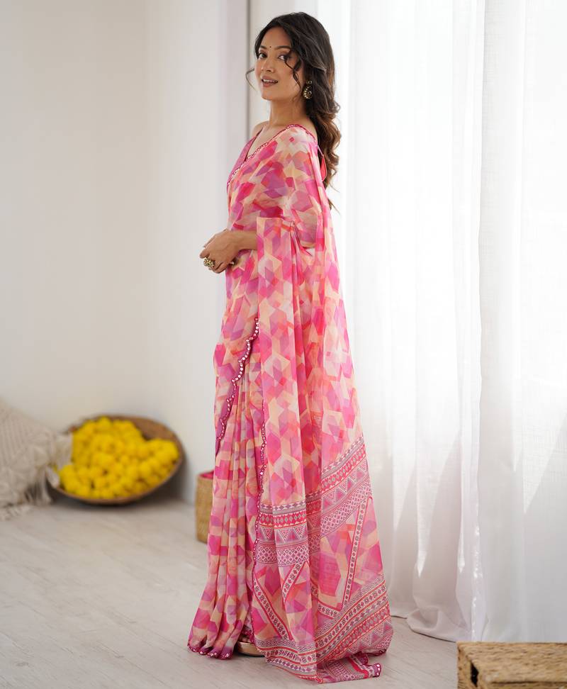 Georgette printed saree with mirror work border