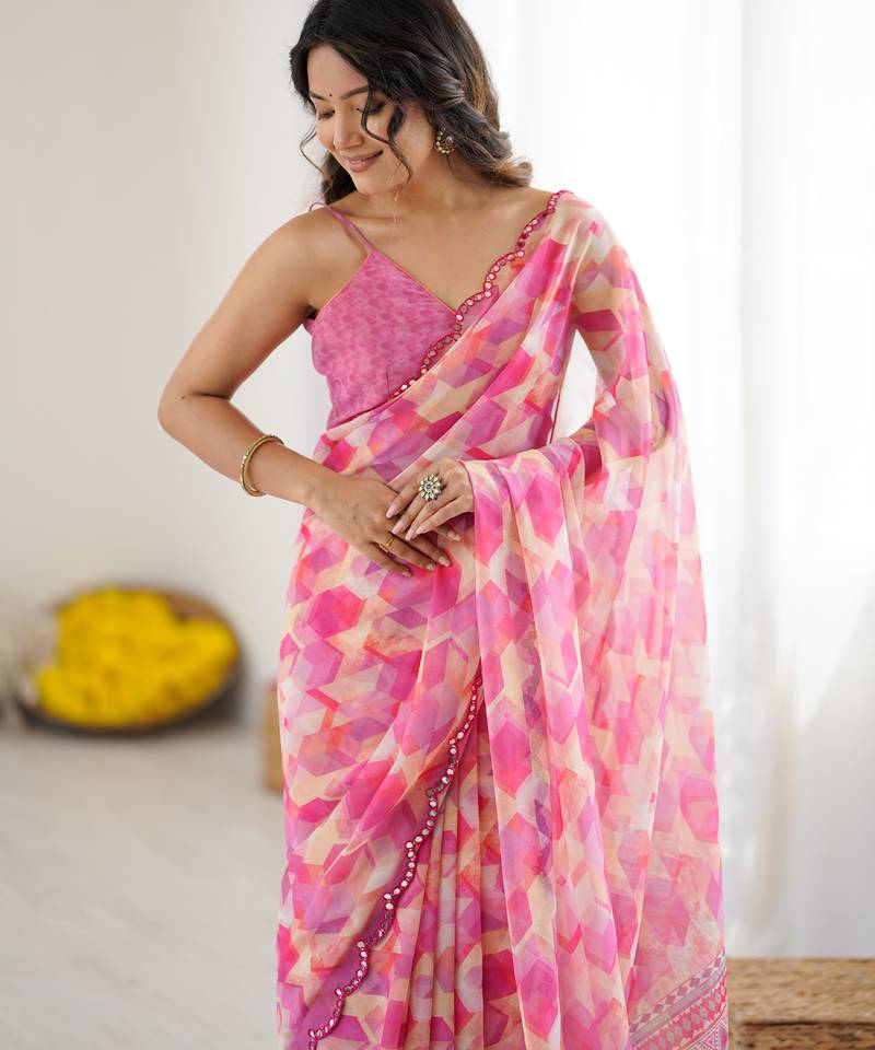 Product Name | Georgette Printed Saree With Mirror Work Border | |