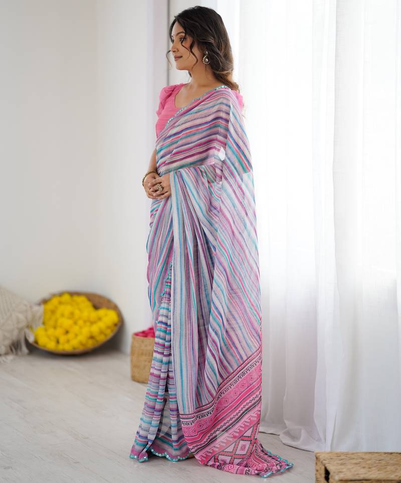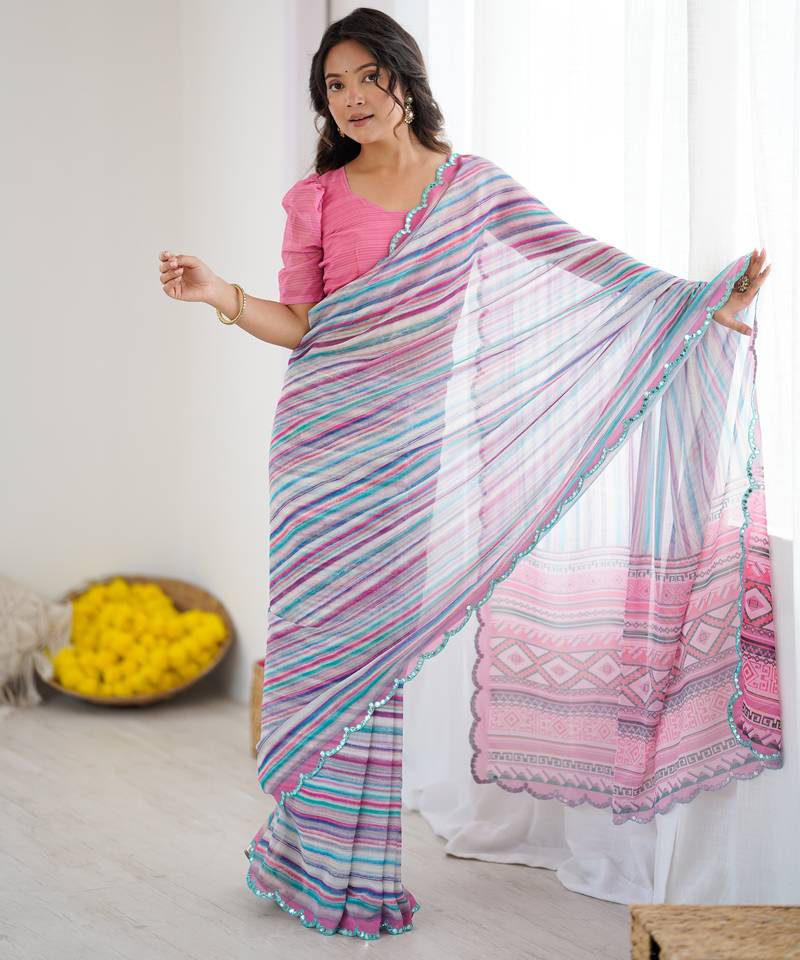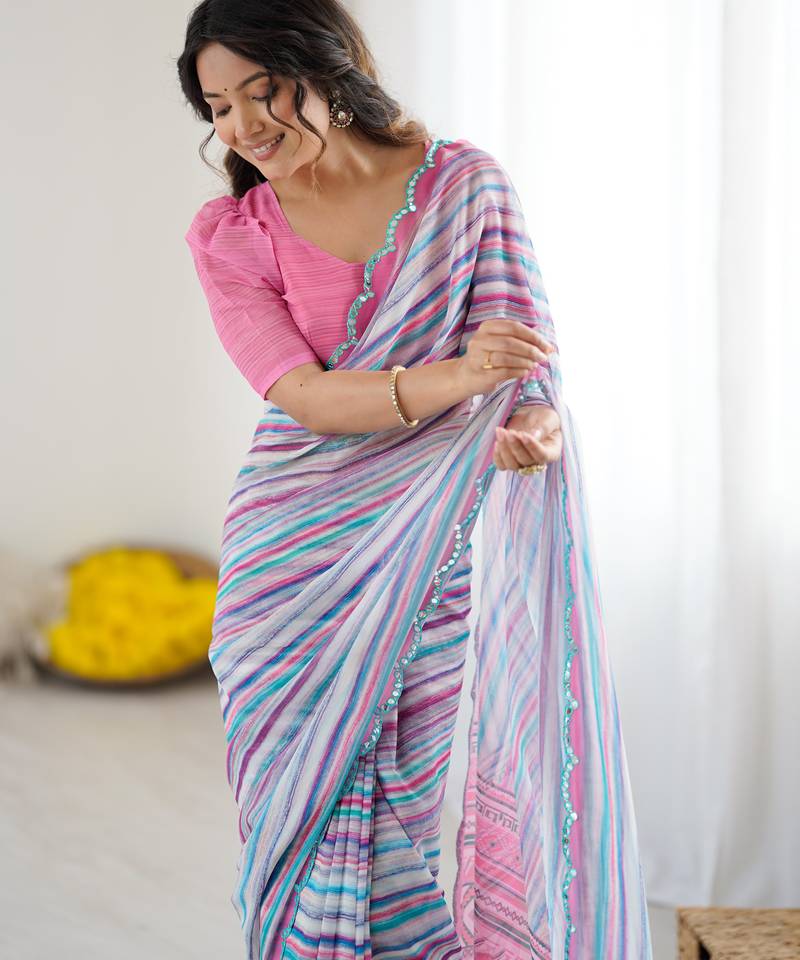 Product Name | Georgette Printed Saree With Mirror Work Border | |